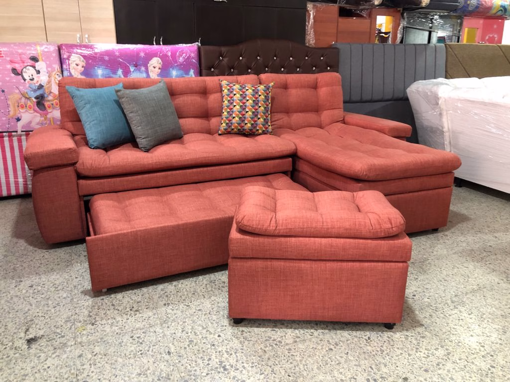 Da un toque moderno, cómodo e innovador a tus espacios con este espectacular sofá cama en «L» que tenemos para ti. Su estructura está fabricada con madera de sajo cepillada, secada e inmunizada para extraer la humedad; espuma firme, resistente y de alta calidad lo que garantiza confort en el momento de hacer uso de este.